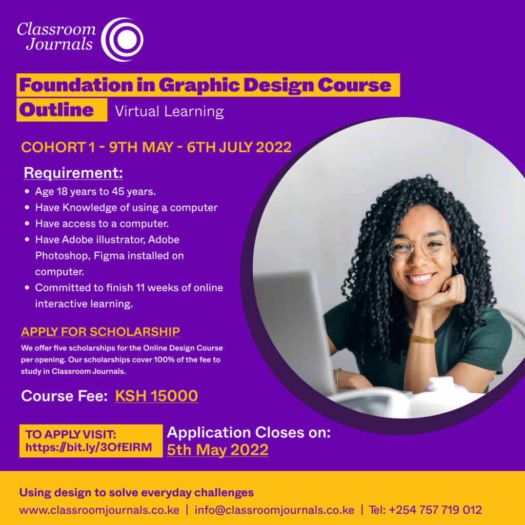 Our Online Graphic Design Course is starting on May 9th, 2022, anyone interested or knows an interested person may reach out: